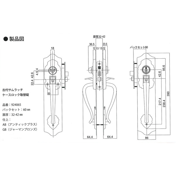 古代サムラッチ取替錠    ケースロック NFcy 924065 AB・GB色