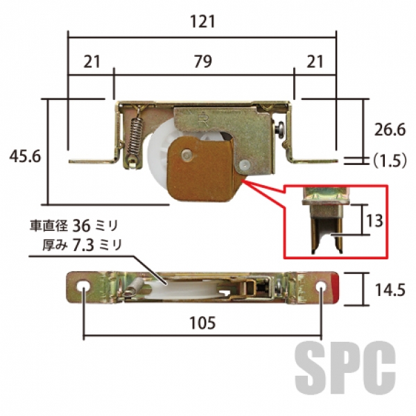 商品刻印がLとなっていますが、弊社では商品名が逆となります。左右で違う戸車が取り付いていることが多いため、必ず戸車を外して形状・寸法を確認下さい。