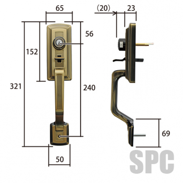 GOAL・アンティーク錠 S-CT-5-OAK 補助錠付・両面サムピースハンドル