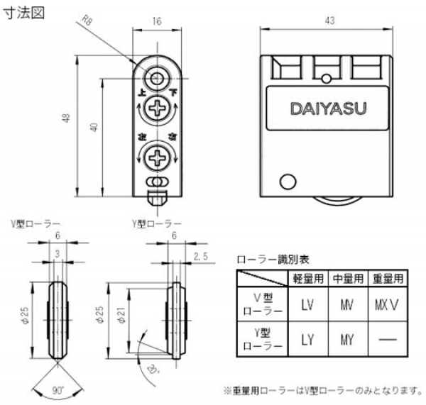 建具用戸車 V型車