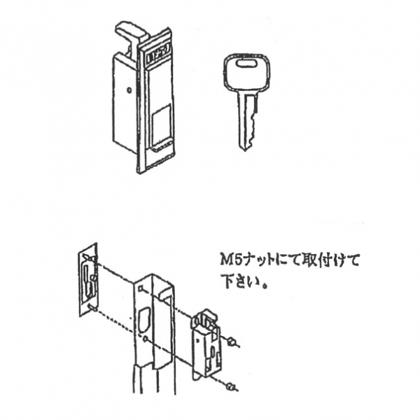 物置引き戸 錠部品です。商品判別は、刻印等がありませんので姿図・寸法により判断願います。
