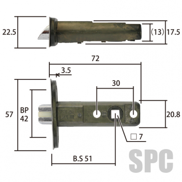 7ST-51Nの旧型。代替にあたって建具本体の切欠き穴の大きさによっては、21φの座彫り加工が必要です。