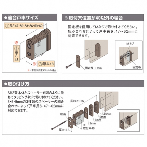 戸車本体はついておりませんので、家研・引戸戸車SR2のページにてご購入ください。