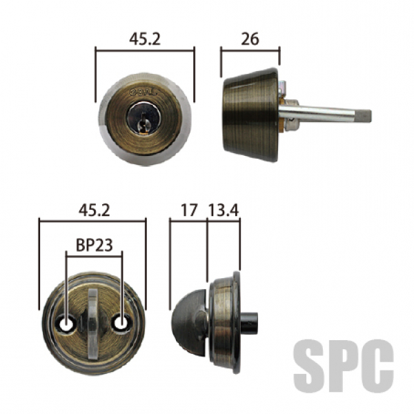 GOAL・アンティーク錠 S-CT-5-OAK 補助錠付・両面サムピースハンドル