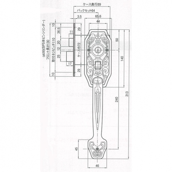 ■ケース 176-KS-220 GOAL・CTアンティック錠用ケース BS:64mm