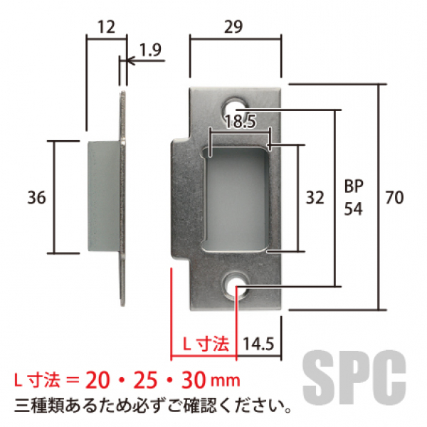 こちらのストライクはドア厚(刻印)によって受座寸法が異なります。必ずご確認ください。