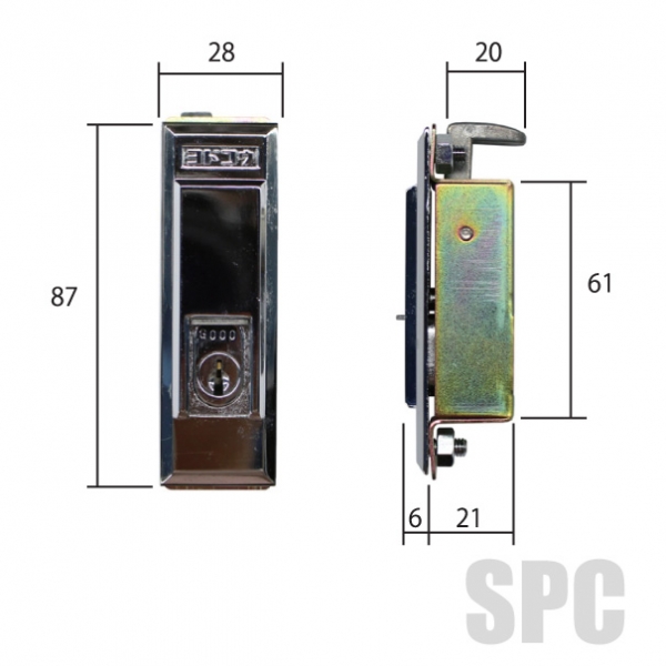 物置引き戸 錠部品です。商品判別は、刻印等がありませんので姿図・寸法により判断願います。