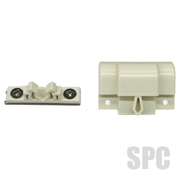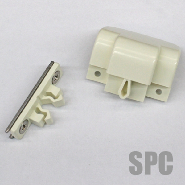アルミサッシタテ滑り出し窓の内側に取り付ける網戸の部品です。取っ手と枠側に付いているキャッチと1組になります。