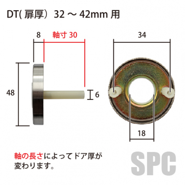 こちらの丸座はドア厚:33~42mm用になります。