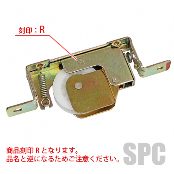 商品刻印がLとなっていますが、弊社では商品名が逆となります。左右で違う戸車が取り付いていることが多いため、必ず戸車を外して形状・寸法を確認下さい。