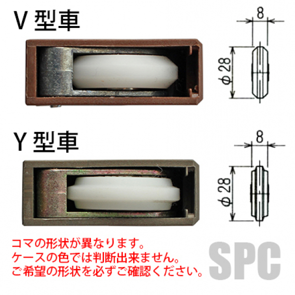 こちらの戸車の車形状はY型になります。写真は一部V型を使用しております。
