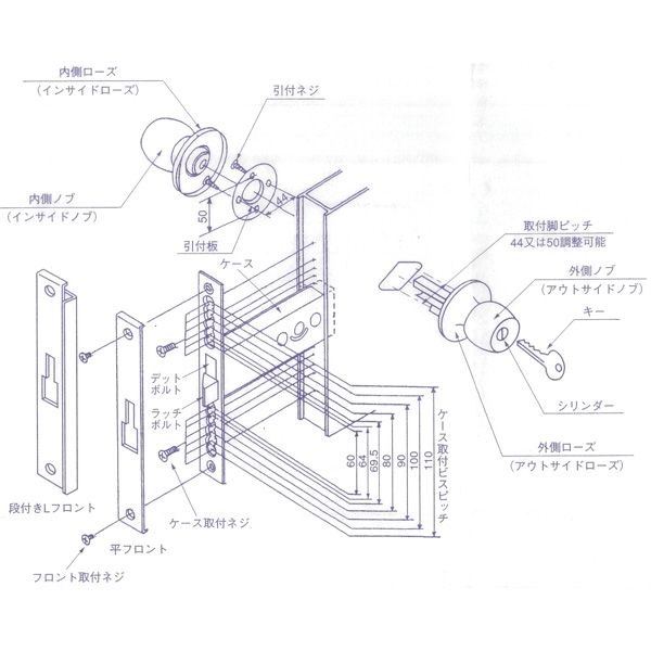 ■錠ケース 玄関錠ケース SHOWA IX-123 BS/100mm