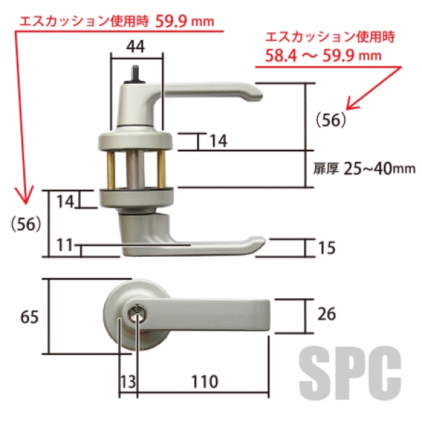 ドア厚 25~40ミリ用ビスピッチ 44ミリ