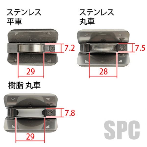 12S平:ステンレス平車12S丸:ステンレス丸車12D丸:ポリアセタール丸車