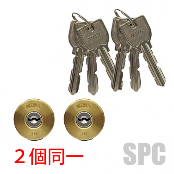 MIWAシリンダー U9-DA75 2個同一 ゴールド色