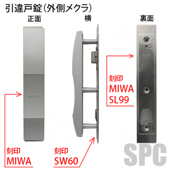MIWA 引戸錠  SL99-3 外メクラ 内サムターン