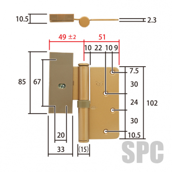 こちらの丁番は従来、上下で仕様が分かれておりましたが、現状上のみの手配で上下兼用となります。軸芯の寸法のみが異なる為、そのままご使用は可能なものとなります。上下で交換される場合は丁番2枚のご購入をお願いいたします。
